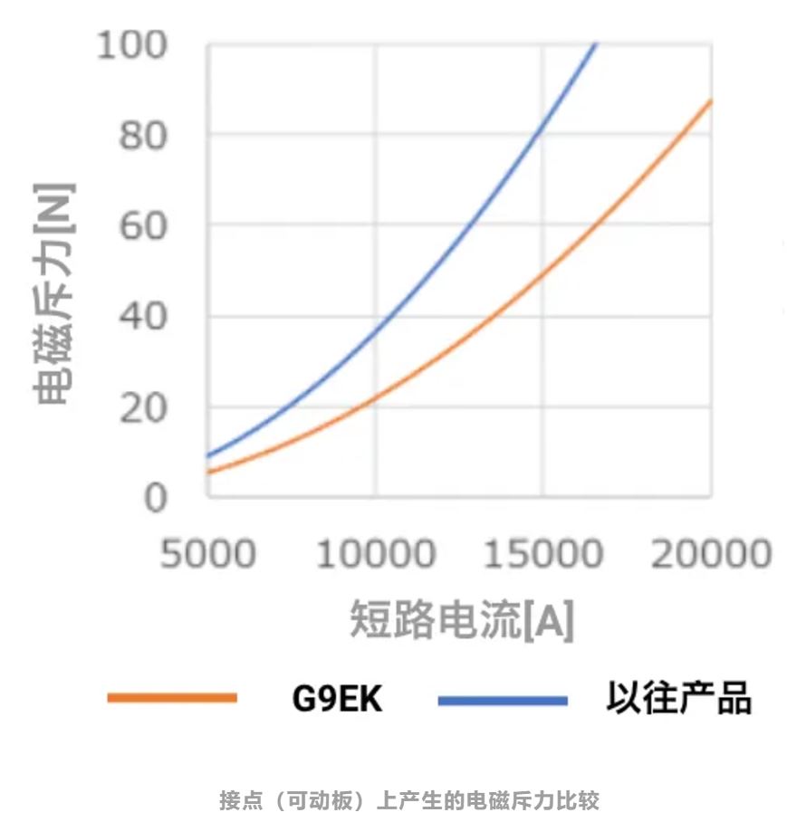G9EK通过采用可将端子产生的磁场影响降低到较小限度的端子结构,实现很高的短路性能,可承受5000A 5ms以上的大电流。