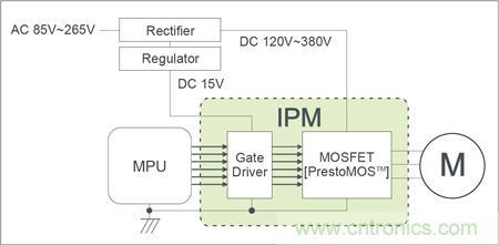 而为了减轻这种节能家电的设计负担,较标准的做法是采用将建构系统所需的功率元器件和控制IC等集成于单芯片化的IPM。