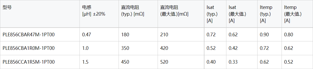 随着无线耳机和智能手表等可穿戴设备的功能和性能不断增强,单个系统内安装的组件数量也日趋增多。然而,此类设备的可用空间仍十分有限,从而推动了对小型化电子元件的需求。PLE856C系列的电感值在470nH到1.5µH之间,是业内面向此类设备内部电源电路的最小电感器,有助于节约空间的设计和轻量型设备。与传统的 PLEA67B系列(1.0 x 0.6 x 0.8毫米;长 x 宽 x 高)相比,新推出的PLE856C系列所需的安装面积缩小了40%,体积减少了50%。额定饱和电流在0.40 A 和 0.72 A (typ.)之间。