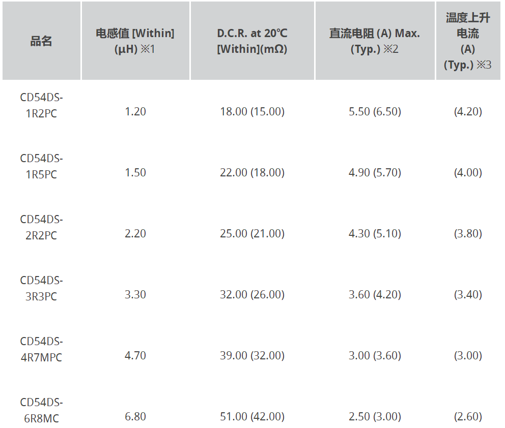 ※2饱和电流:表示电感比初始值低10%时的直流电流值。