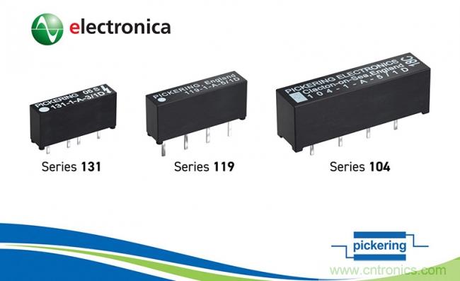 Pickering的119系列微型单列直插(SIL)舌簧继电器在10W下提供最高3000V的截止电压规格;104系列继电器同样提供3000V截止电压规格,但功率更高,最高25W。