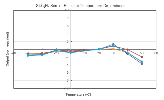 S4C₂H₄乙烯传感器基线的温度依赖性曲线