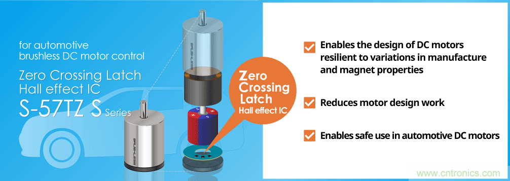 【导读】艾普凌科有限公司(ABLIC Inc.)(总裁:石合信正,总部:千叶县千叶市;以下简称“ABLIC”)今日发布了旨在变革无刷直流电机的开发和制造的S-57TZ系列Zero Crossing Latch车载用霍尔效应IC(磁传感器)。