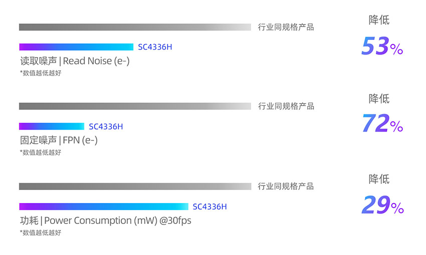 SC4336H搭载思特威专利的SFCPixel®技术与超低噪声外围读取电路技术,噪声抑制性能突出。与行业同规格产品相比,其读取噪声(RN)大幅降低约53%,固定噪声(FPN)降低约72%,可显著减少画面中的噪点,即使在暗光场景下也能为摄像头捕获到更清晰干净、细腻丰富的影像画面,有效提升安防监控的图像捕捉能力。