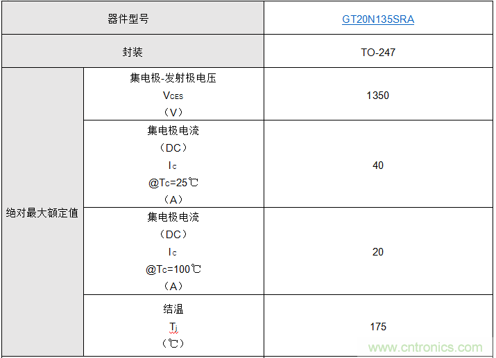 (2)VF=1.75V(典型值)(@IF=20A、VGE=0V、Ta=25℃)