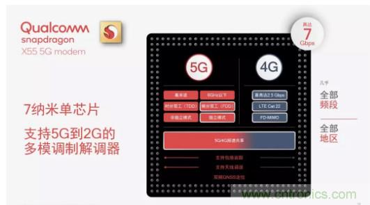 2016年,高通发布第一款5G调制解调器骁龙X50,采用的是10纳米工艺,传输速率仅5Gbps。这次发布的骁龙X55,号称是迄今最先进的调制解调器。