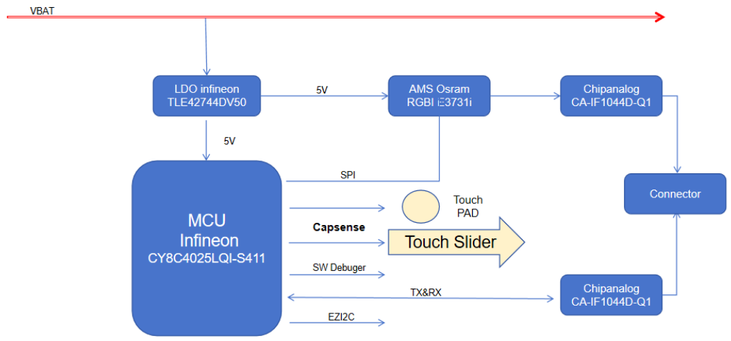图示3-大联大品佳基于Infineon、ams OSRAM以及川土微电子产品的车载触控氛围灯方案的方块图