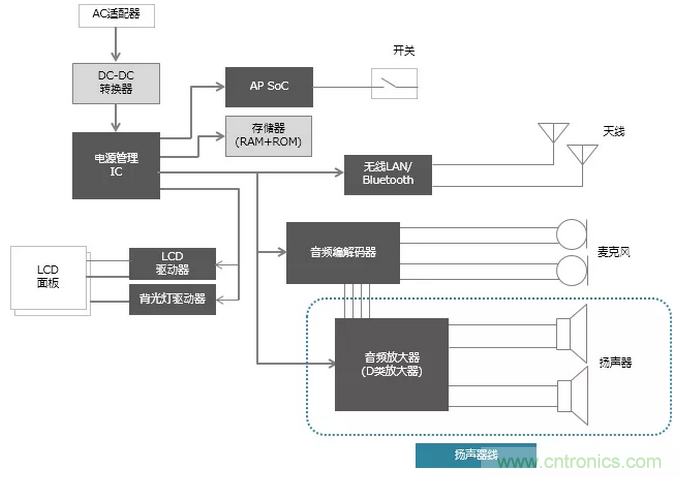 智能手机及AI扬声器等需要依靠电池进行长时间驱动以及要求小型化的扬声器用音响放大器中采用了拥有小型、高效率特点的D类放大器。