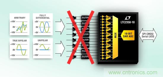 【导读】亚德诺半导体 (Analog Devices, Inc.,简称 ADI) 旗下凌力尔特公司推出 18 位 8 通道同时采样逐次逼近型寄存器 (SAR) ADC LTC2358-18,该器件具集成的微微安培输入缓冲器。