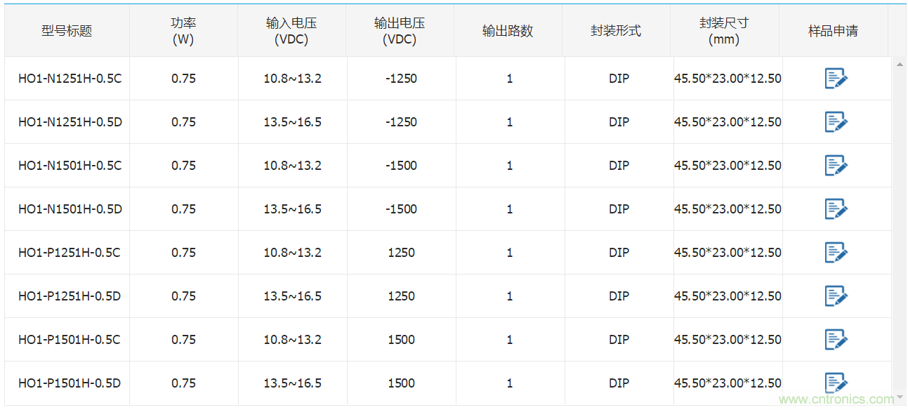 【导读】 HO1-P(N)xxxxH-0.5C、HO1-P(N)xxxxH-0.5D系列是MORNSUN为了满足电源系统中需要产生高电压、并且对输出电压稳定性要求高的应用场合而设计开发的产品。