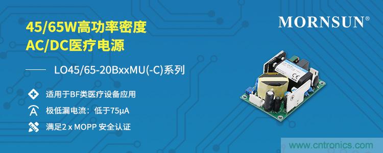【导读】LO45/65-20BxxMU(-C)是金升阳为客户提供的小型化开板电源,适合BF型患者可接触的医疗系统设备使用。该系列产品满足医疗认证标准,拥有全球通用输入电压范围、交直流两用、效率高达91%、高可靠性:漏电流低至75μA等优点,极具性价比。