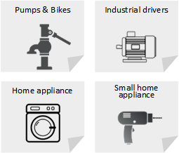 消费类电机:洗衣机、空调、冰箱、电瓶车、滑板车、电风扇、吸尘器、高速吹风机、电动工具、搅拌机、破壁机、抽油烟机、扫地机器人等