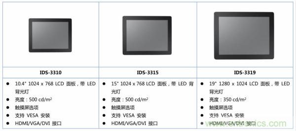 IDS-3315 (15”) 现可订购,并有盖板玻璃、电阻式触摸屏和投射电容式触摸屏可供选择。IDS-3319 (19”) 和 IDS-3310 (10.4”) 将于 2019 年第二季度上线。