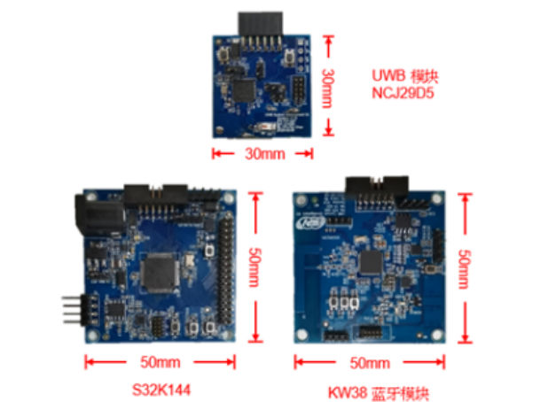 本方案主要分为5部分,即:钥匙端、车身锚点、车内锚点、基站蓝牙和BCM,其中,钥匙端由BLE KW38 + UWB NCJ29D5组成。NCJ29D5是NXP推出的新一代超宽带(UWB)IC系列的第一款产品,专用于满足全球汽车业的连接和功能安全需求。UWB IC使汽车准确识别用户位置,定位误差精确到厘米级别。这可为基于智能手机的汽车接入技术提供与一流遥控钥匙相同的便利性。用户将手机放在口袋或包中便能够打开和启动汽车,并通过智能手机享受安全的远程泊车服务。此外,新的UWB IC还可最大限度地防止通过中继攻击盗车的风险。
