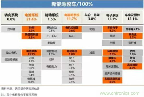 新能源汽车零部件成本占比