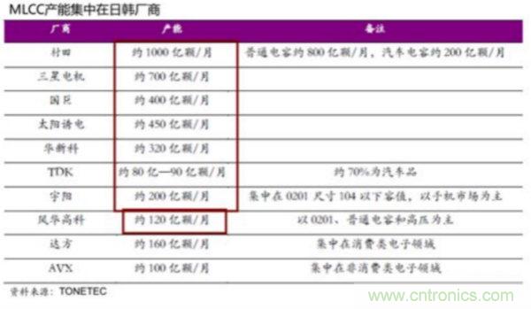 几大厂商都有很多常规 MLCC 产能,但高端 MLCC 产能因为对技术要求比较高,目前集中在日本厂商手中。