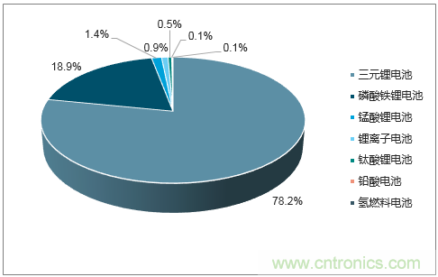 目前,国内动力电池市场主要电池类型有三元锂电池、磷酸铁锂电池、锰酸锂电池、锂离子电池、钛酸锂电池等。据统计数据显示,2018年1-5月三元锂电池的市场份额占比最大达55%,比2017年提升了10个百分点。此外,锰酸锂电池和钛酸锂电池的需求逐步减弱。分车型来看,新能源乘用车市场主要装机的为三元锂电池;新能源客车市场主要装机的为磷酸铁锂电池、锰酸锂电池;专用车市场主要装机的为三元锂电池。