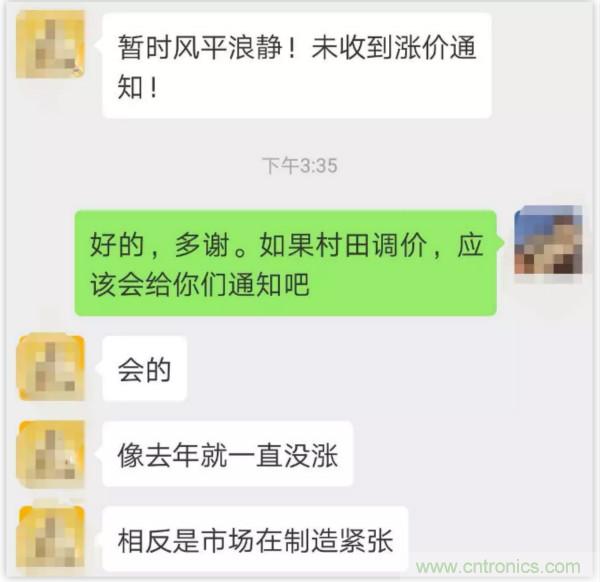 针对村田是否调整产品价格,芯师爷也向相关代理商进行了咨询,绝大多数代理商均反馈“没有收到正式涨价的通知,目前风平浪静”。但是关于涨价的消息,已经在行业内传播。