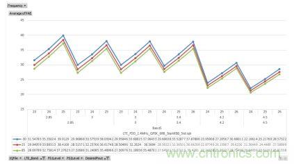 在射频前端的链路预算中,假定PA输出损耗为2dB,我们可以看到RF3628 高功率模式的 sweet point。