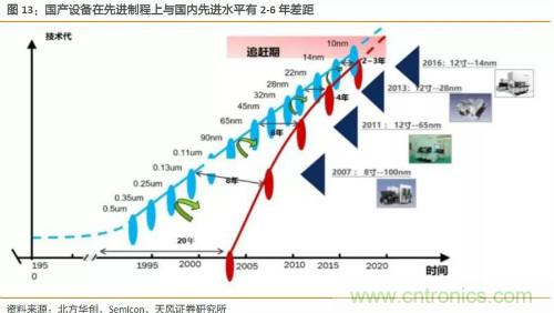 2)设备:自给率低,需求缺口较大,当前在中端设备实现突破,初步产业链成套布局,但高端制程/产品仍需攻克,短期内可通过与非美海外企业合作,降低对美国的依赖;