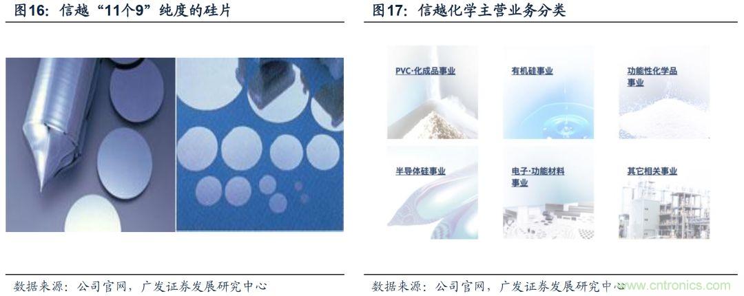 目前信越化学的单晶硅已经可以达到纯度99.999999999%(11个9)的生产水平,技术远超其他企业。它是最早成功研制300mm硅片及实现了SOI硅片的产品化的企业。