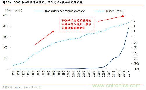 我们认为,处理器是计算机、服务器的核心部件,代表着计算机的运算能力,而整个计算机和互联网技术革命的周期就是以运算为基础,从而实现技术的跨越。英特尔公司早在 1971 年研发出第一款商用的处理器,自此以后,英特尔走上了不断追赶摩尔定律的过程,大概每 8-10年一个周期,推出一款重量级的升级处理器。