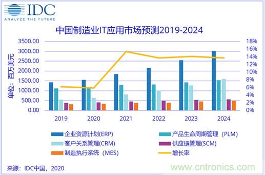 另外根据IDC此前发布的《IDC 2020年制造业IT支出指南》数据,2019年中国制造业IT支出达158.7亿美元,其中,航天航空与防务、汽车、化工是制造业细分行业中IT支出的前三大行业。