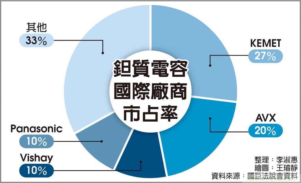 基美在钽电的排名高居全球第一市占率近三成,国巨对法人表示,钽电的售价比起MLCC极高,透过扩产,可望进一步提升市占。
