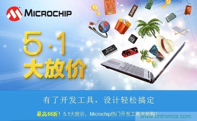 【导读】在欢庆"国际劳动节"之际,为答谢广大新老客户,Microchip以指定开发工具最高55折的优惠价格,为中国大陆、香港和台湾地区的工程师献上大礼。即日至5月31日,请赶紧登录microchipDIRECT网站抢购!