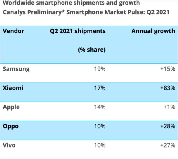 【导读】7月16日消息,根据市场研究公司Canalys Research最新公布的报告显示,在2021年第二季度,随着新冠病毒疫苗在世界各地推出,对于各国经济和公民而言的“新常态”开始形成,全球智能手机出货量增长了12%。