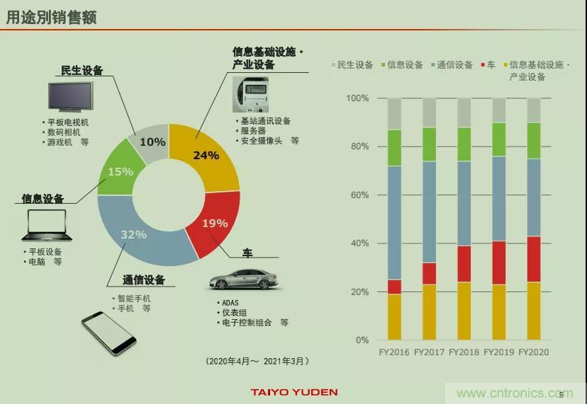 近几年在信息基础设施和产业设备领域,比如基站通讯设备、服务器、安全摄像头等,以及汽车领域,比如包括ADAS、仪表组和电子控制组合等增长明显。渡边敏幸强调,公司的中期目标是,车和信息基础设备领域的销售额比重达到50%。